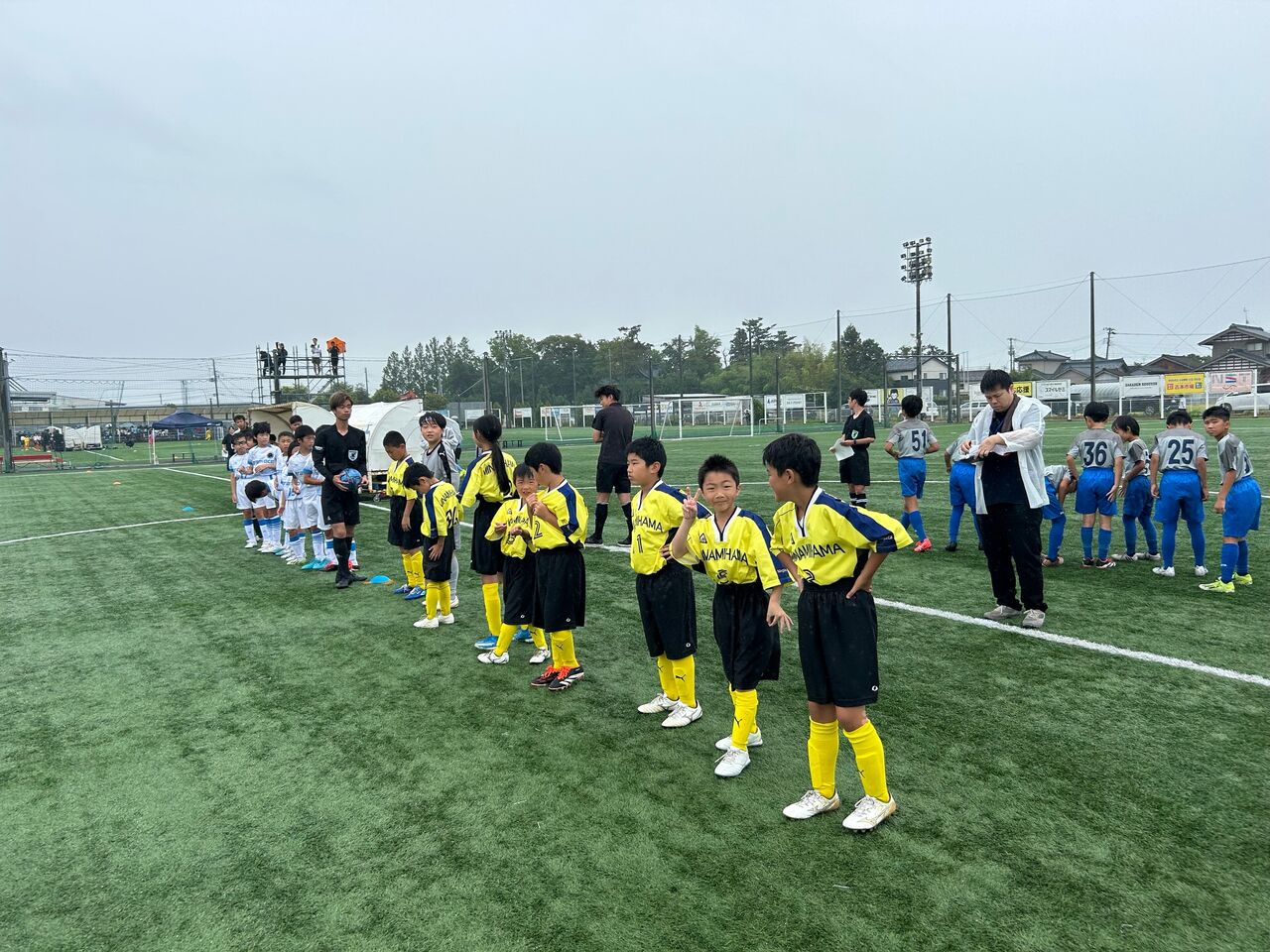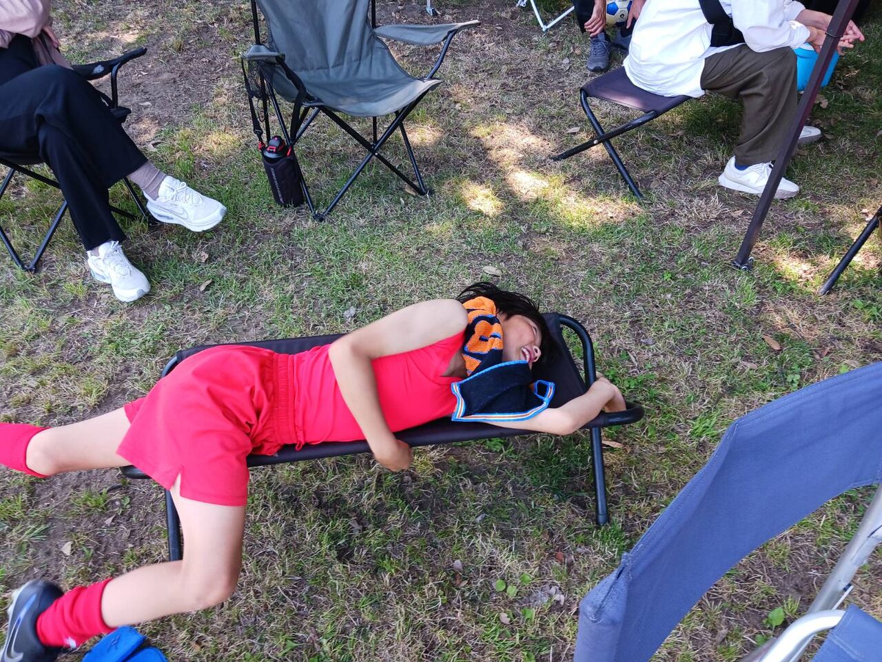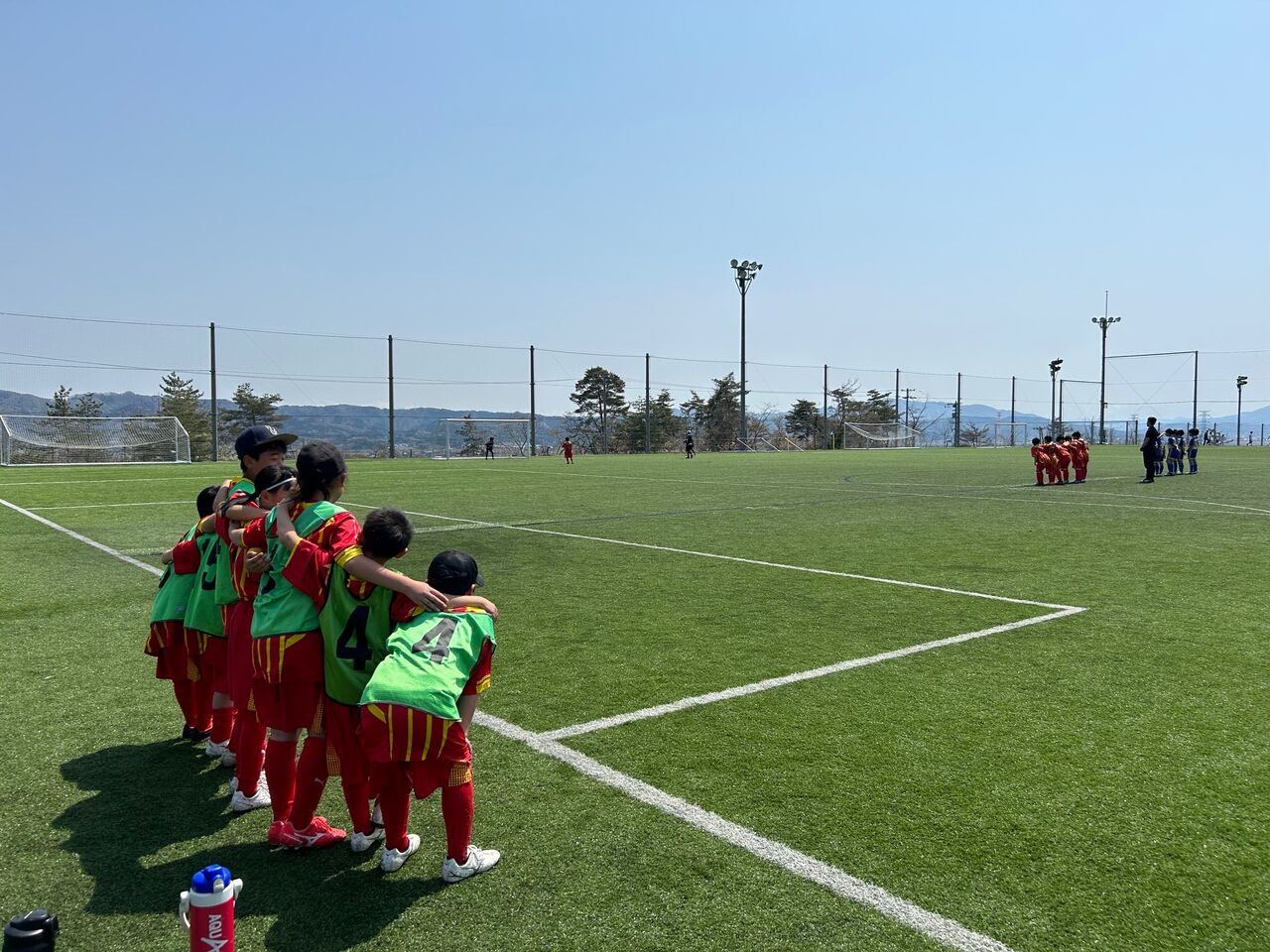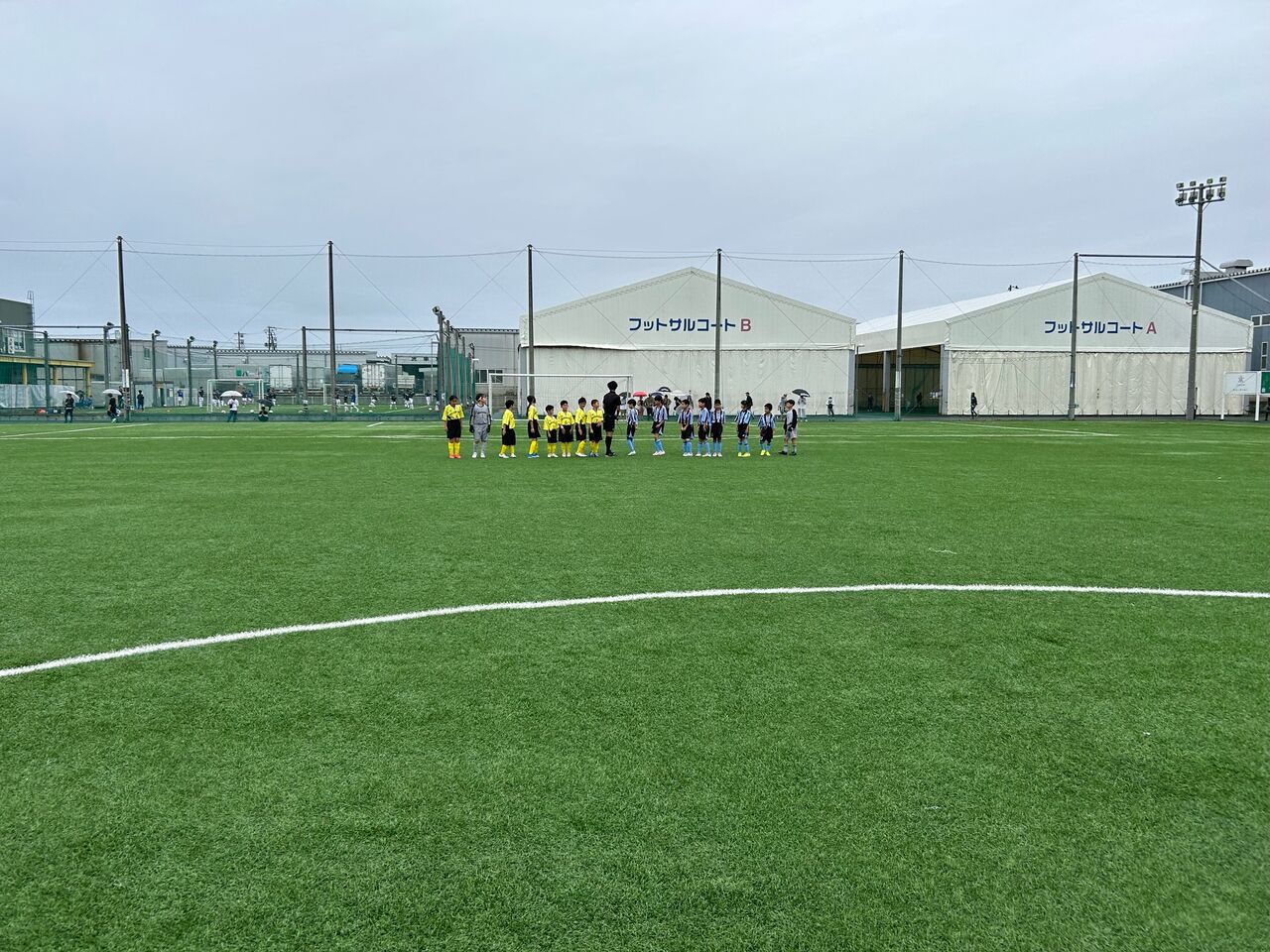 二戦目 相手チームの戦いの前に子供逹は足が痛い、頭が痛い😞💥十一人いた子供逹が八人ギリギリ、守備に奮闘したが