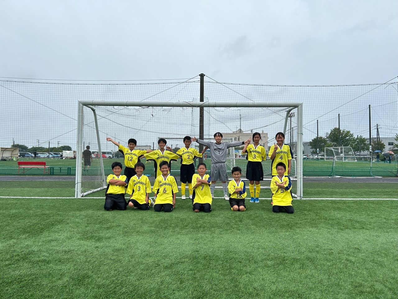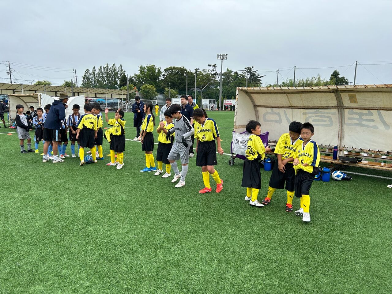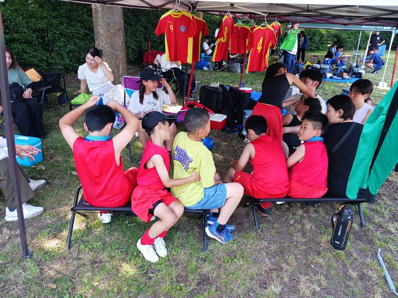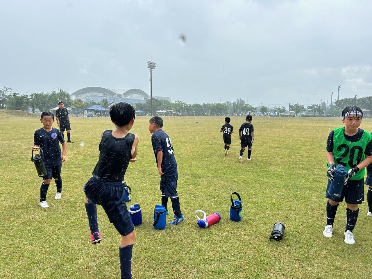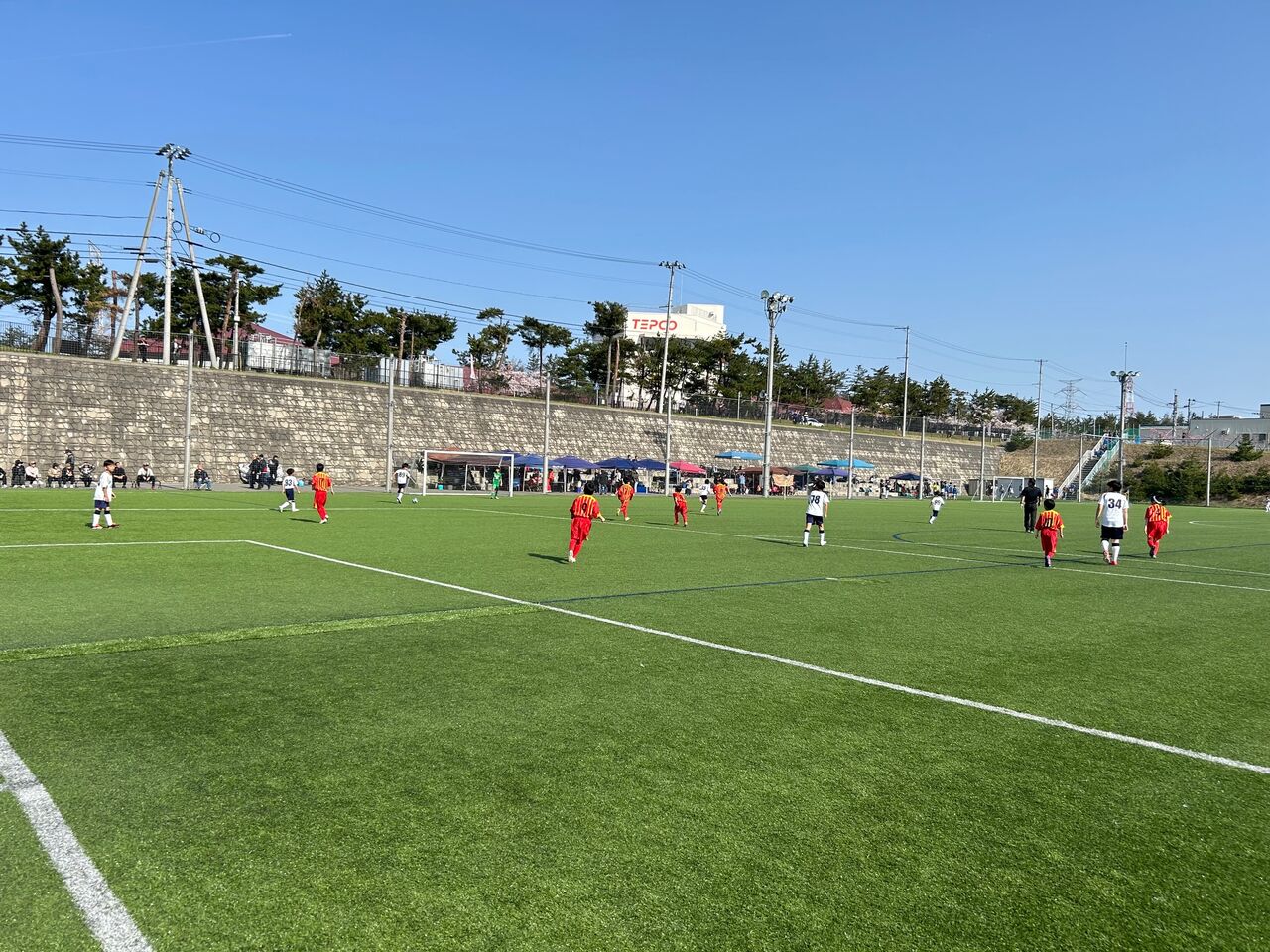二戦目 相手チームの戦いの前に子供逹は足が痛い、頭が痛い😞💥十一人いた子供逹が八人ギリギリ、守備に奮闘したが