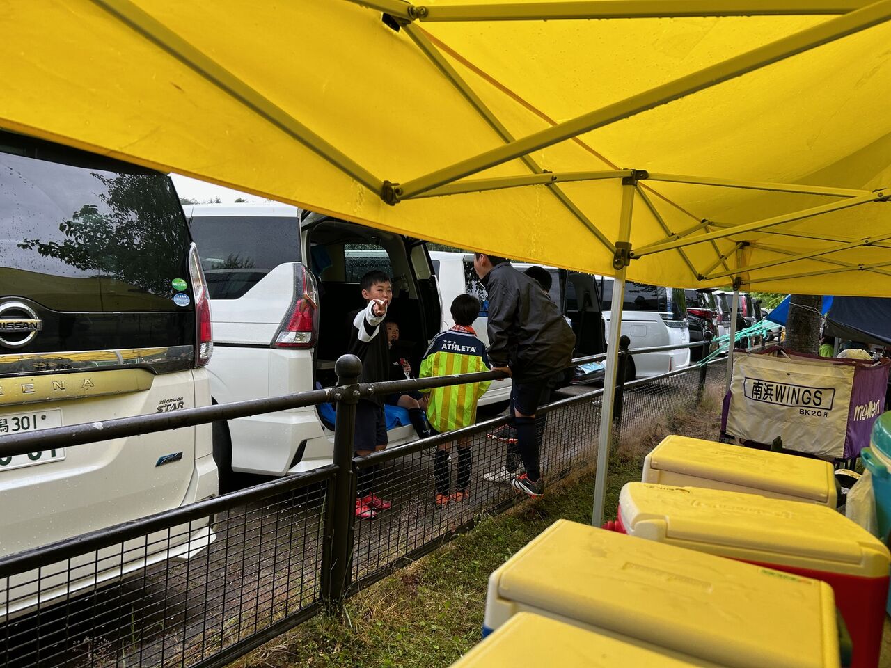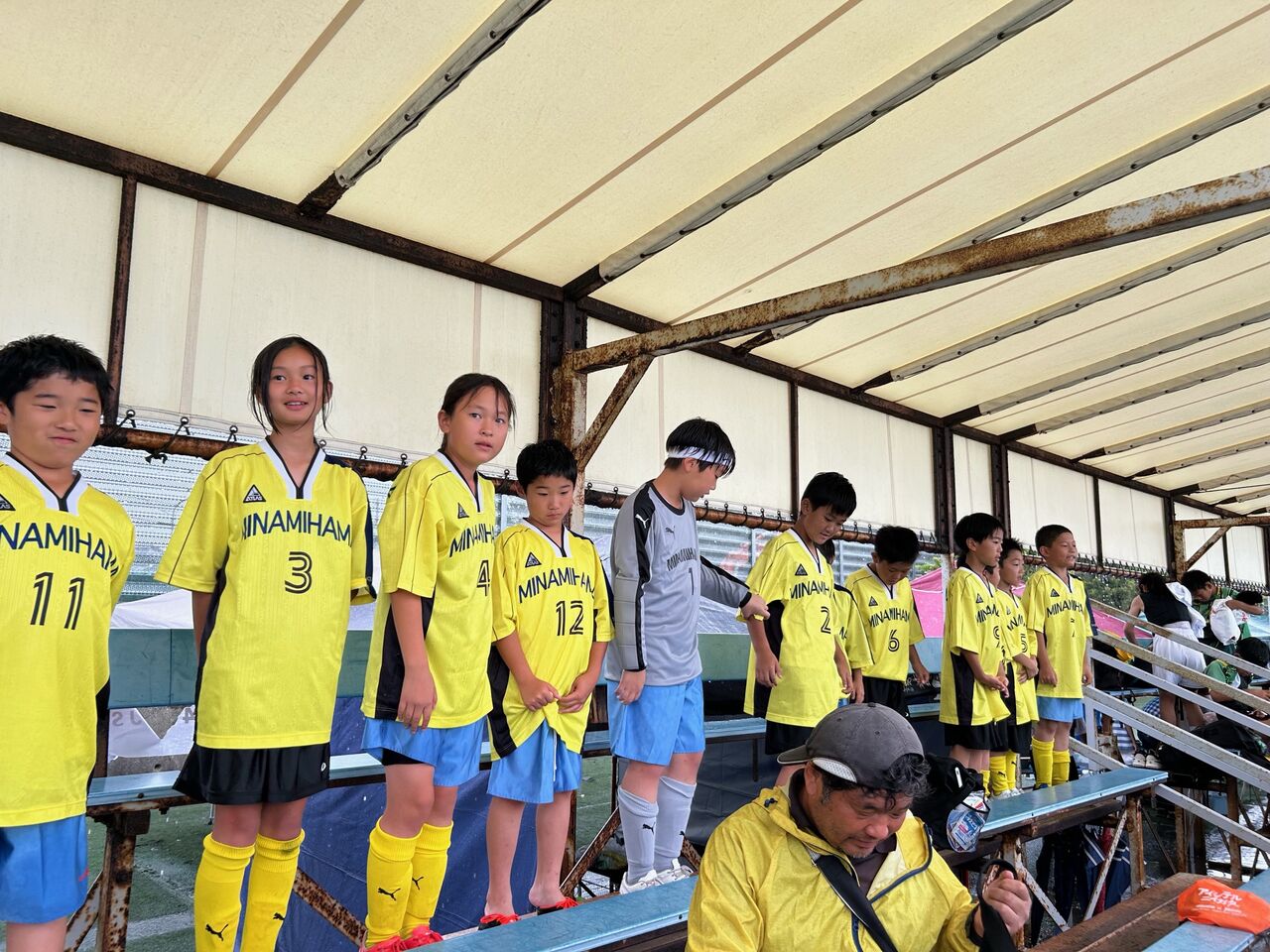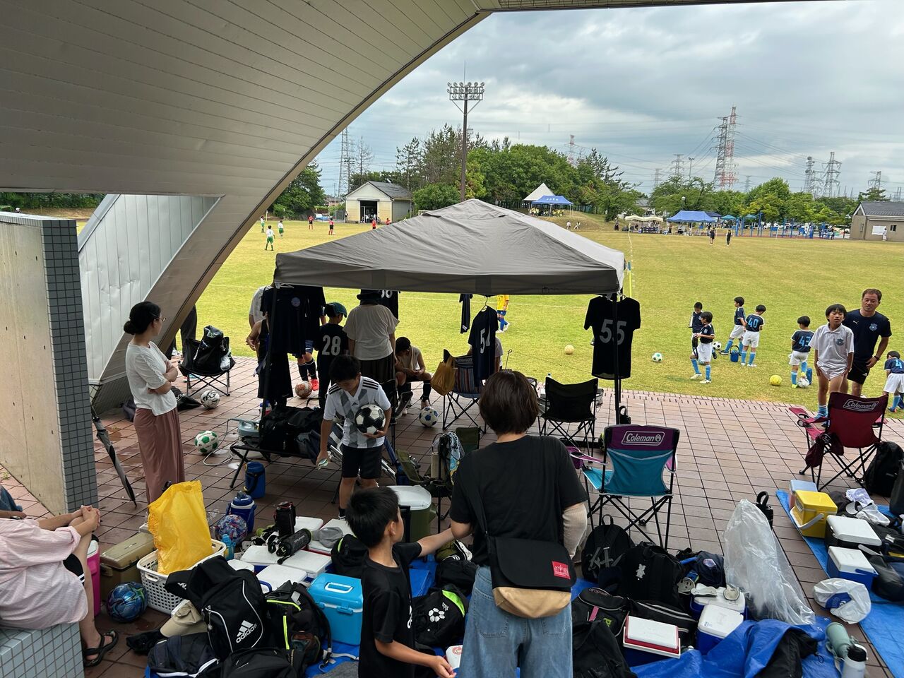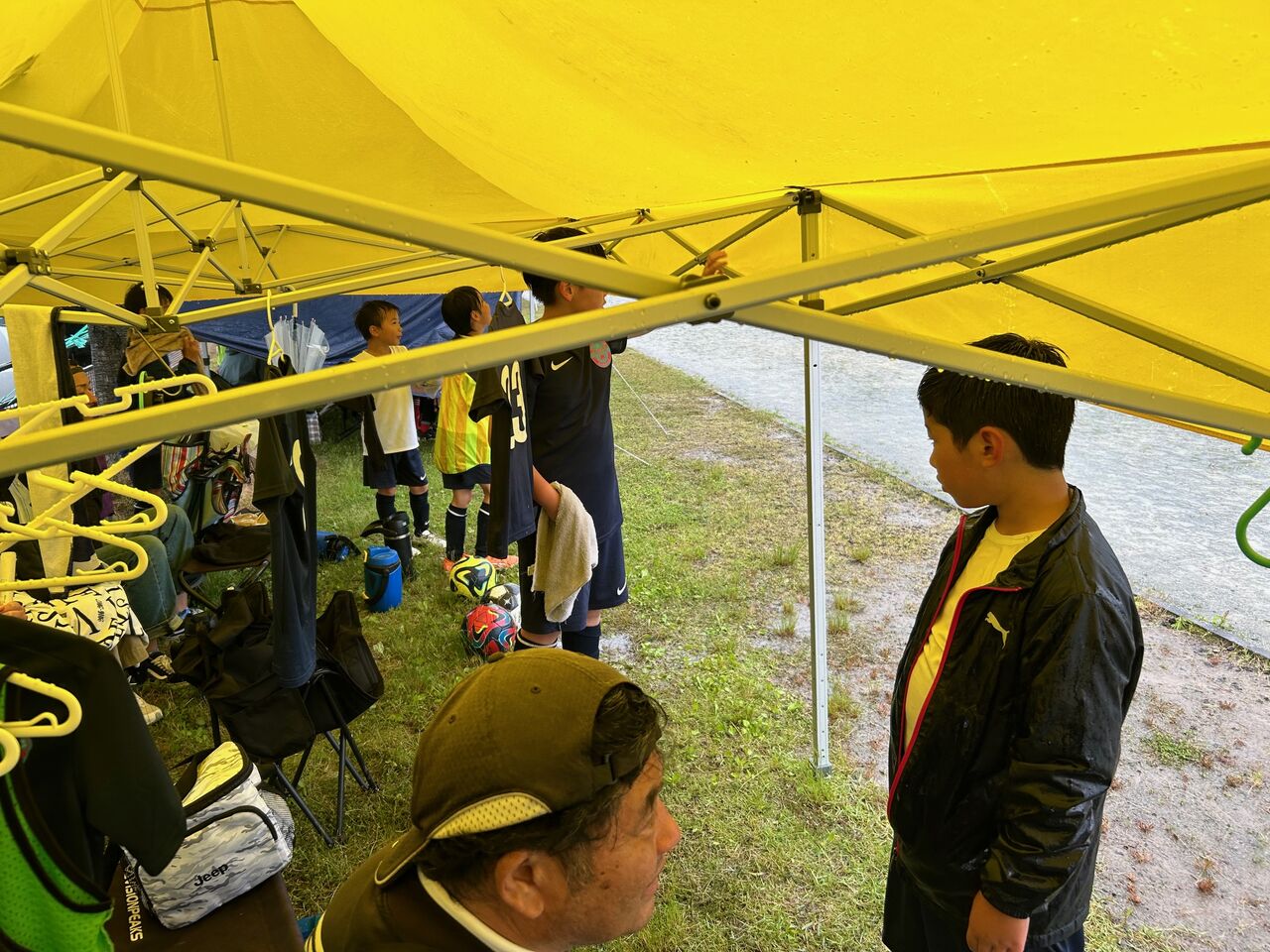 二戦目 相手チームの戦いの前に子供逹は足が痛い、頭が痛い😞💥十一人いた子供逹が八人ギリギリ、守備に奮闘したが